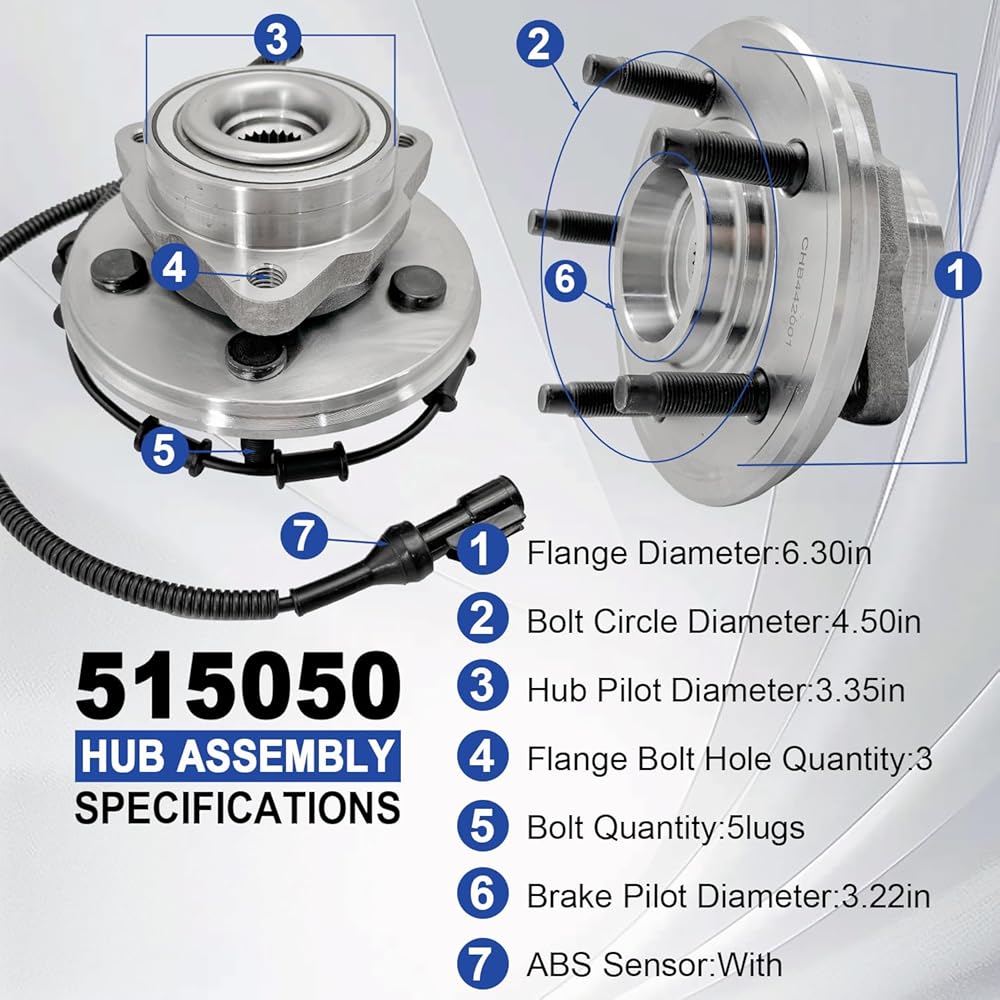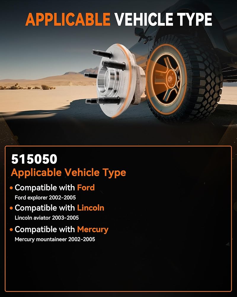 【Applicable Vehicle Model】515050 Wheel Hub Assembly compatible with 2002-2005 Ford Explorer, 2003-2005 Lincoln Aviator, 2002-2005 Mercury Mountaineer For more detailed model application information, please check the detail page