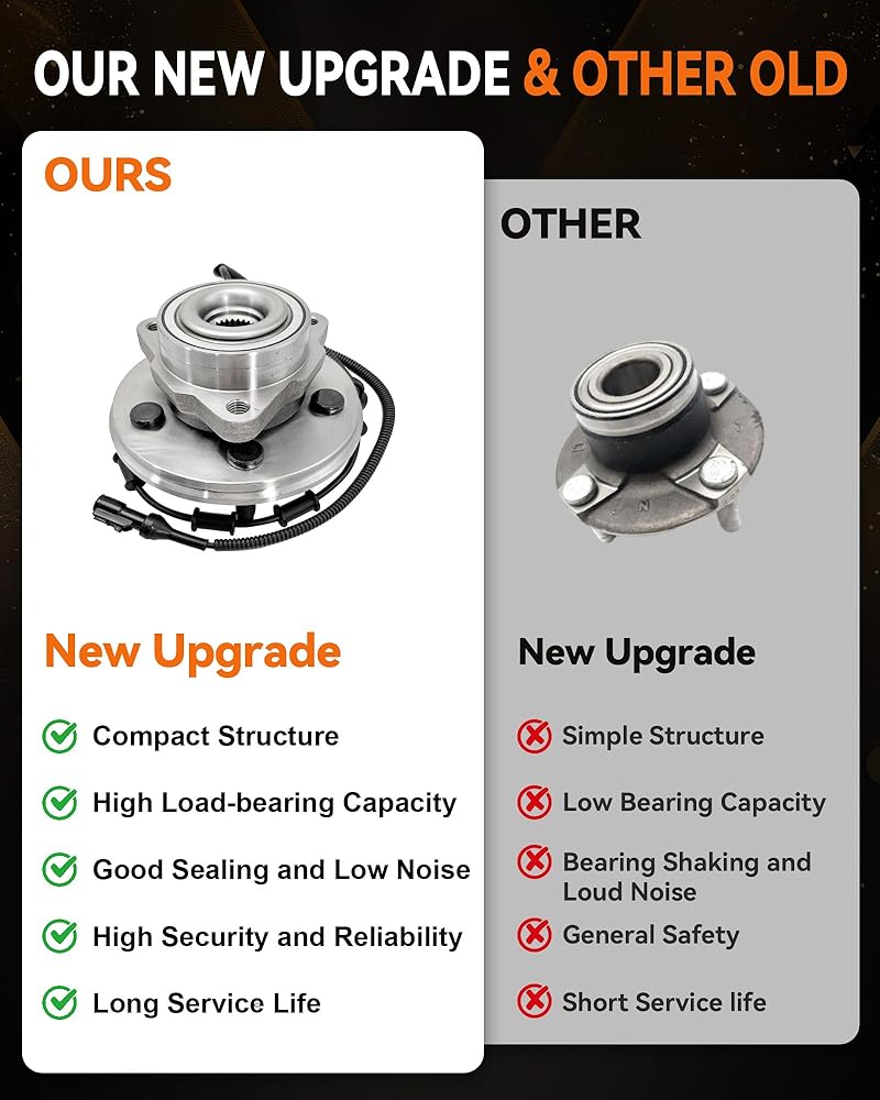 【 Product Upgrade】 The wheel hub bearings are well sealed, compact in structure, and have high load-bearing capacity; Reduced bearing shaking, low noise, and improved driving comfort; Bearings have higher reliability and longer service life.