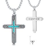 ★ PRODUCT DIMENSIONS ★ Stamped with "S925", this cross necklace is made of 925 sterling silver. Hypoallergenic and harmless to sensitive skin. Color: oxidized silver. Stone: turquoise. Chain: adjustable stainless steel rolo chain. Length: 22" to 24". Turquoise Pendant: 0.86" (21.8 mm) wide, 1.12" (28.4 mm) long, 0.24" (6 mm) long. Pendant Weight: 6.1g. Total Weight: 13.5g. This ash necklace will come with a set of filling kits and a branded gift box.