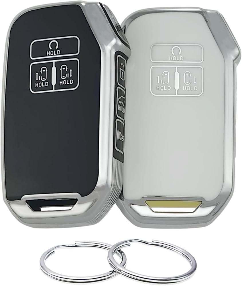 Package Include: 1 Black key Cover,1 White key Cover and 2 304 stainless steel keyrings