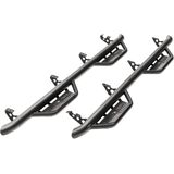 RealTruck's Podium Steps feature a clean design that fits high and tight to the vehicle body in either premium textured black (LG) or high polish stainless steel (SS) finishes, adding to the modern look of your ride. The fully welded 1-piece construction and 3" main tube diameter offer strength and durability. With a patented drop down hoop step with expanded sure grip step plate at each door, Podium Steps allow for easy access to your stock or lifted truck and deliver reliable traction and stability in any weather condition. Installation is easy. Includes all mounting hardware and easy to understand, vehicle specific instructions. RealTruck products are backed by an industry leading 5-year warranty on the product's finish, and Limited Lifetime warranty on workmanship.