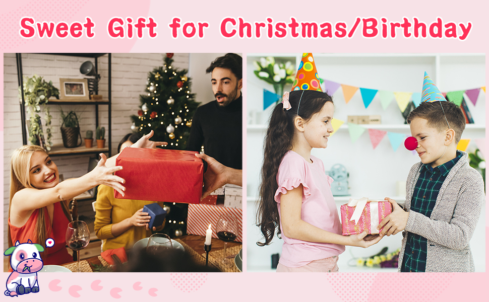🍓𝐇𝐢𝐠𝐡 𝐐𝐮𝐚𝐥𝐢𝐭𝐲 𝐌𝐚𝐭𝐞𝐫𝐢𝐚𝐥:The cow plush pillow is made of plush and cotton blend,filled with PP cotton,super soft and skin-friendly,odorless,comfortable to touch and hug,suitable for boys,girls,adult.A sweet gift for birthday,Valentine's Day,Halloween,Christmas