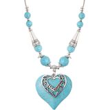 The created turquoise puffed heart shaped necklace is simple, yet encourages us to speak what is in our soul, promotes successful communication, clarity of thought, increased creativity and self-sufficiency.