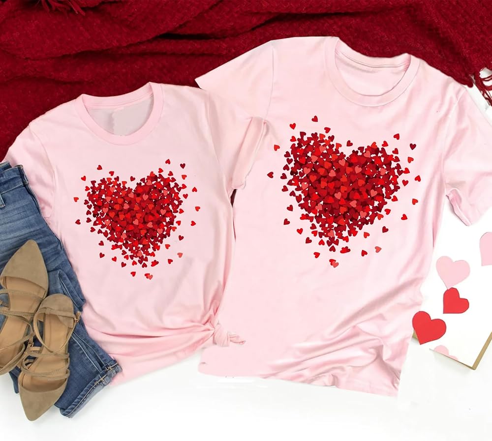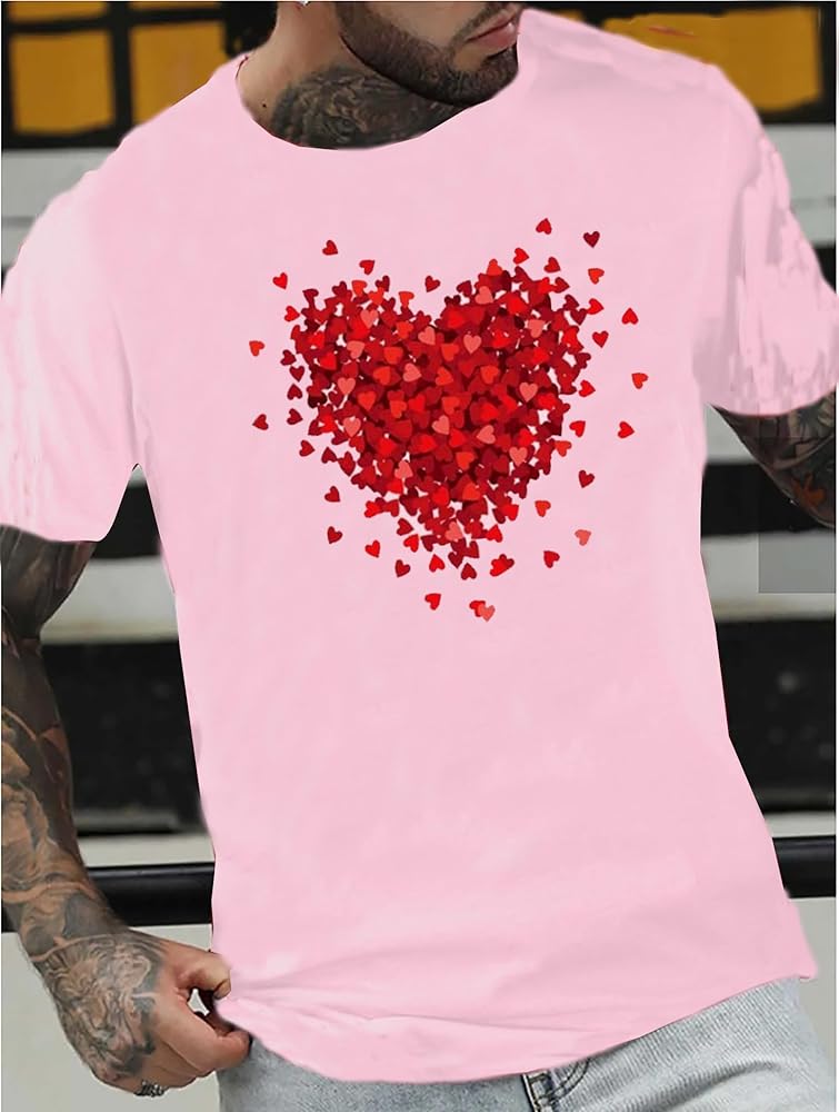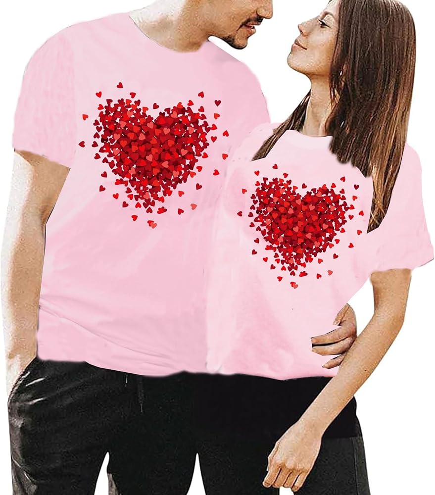Package: Valentine's Day Matching Couples T Shirts Love Heart Print Graphic Tees Valentine Shirt Tops(Pack of 1 Shirt)