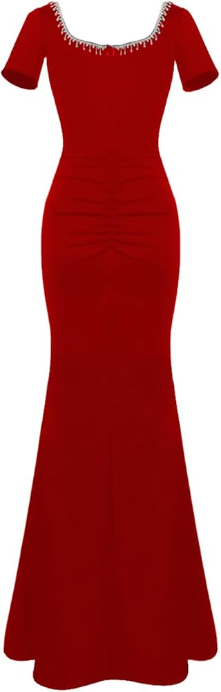 Elegant Design: This square neckline evening gown features a stunning beaded neckline that adds a touch of luxury and sophistication to your look, short sleeves design for elagant wear as well