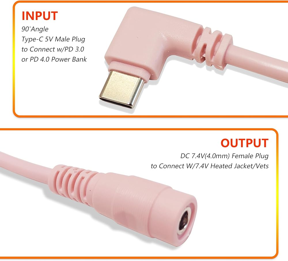 GREAT WINTER GIFT: Nothing is better than keeping you warm when staying outdoor in cold winter! This cable portable and convinent, easy for carry out for travel. With it, normal PD fast charging rechargeable batteries can be treat as heated jacket batteries, and the battery will be far more comfortable on your back/hipand, no need to carry huge and bulky heated jacket batteries anymore