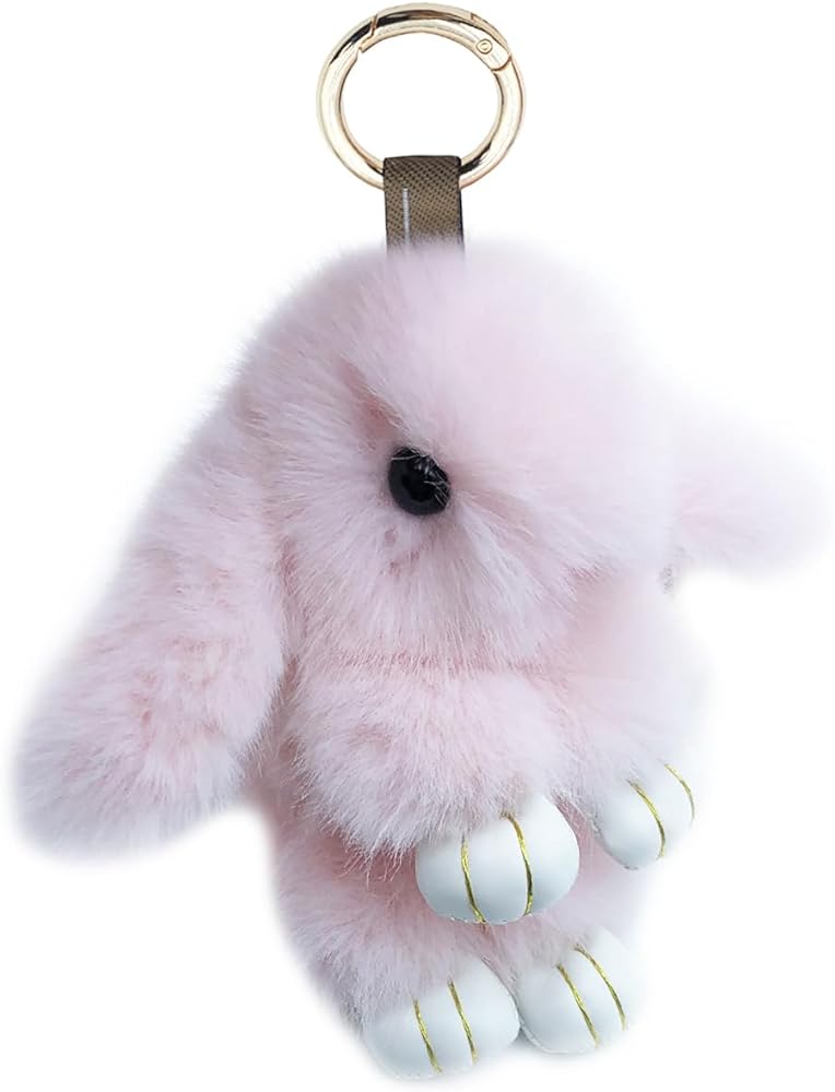 Tips, Caused by packing or rough shipping,it may be deformed.You can use a hair drier to blow it slightly Or comb it , the bunny keychain will become fluffy and shaped !