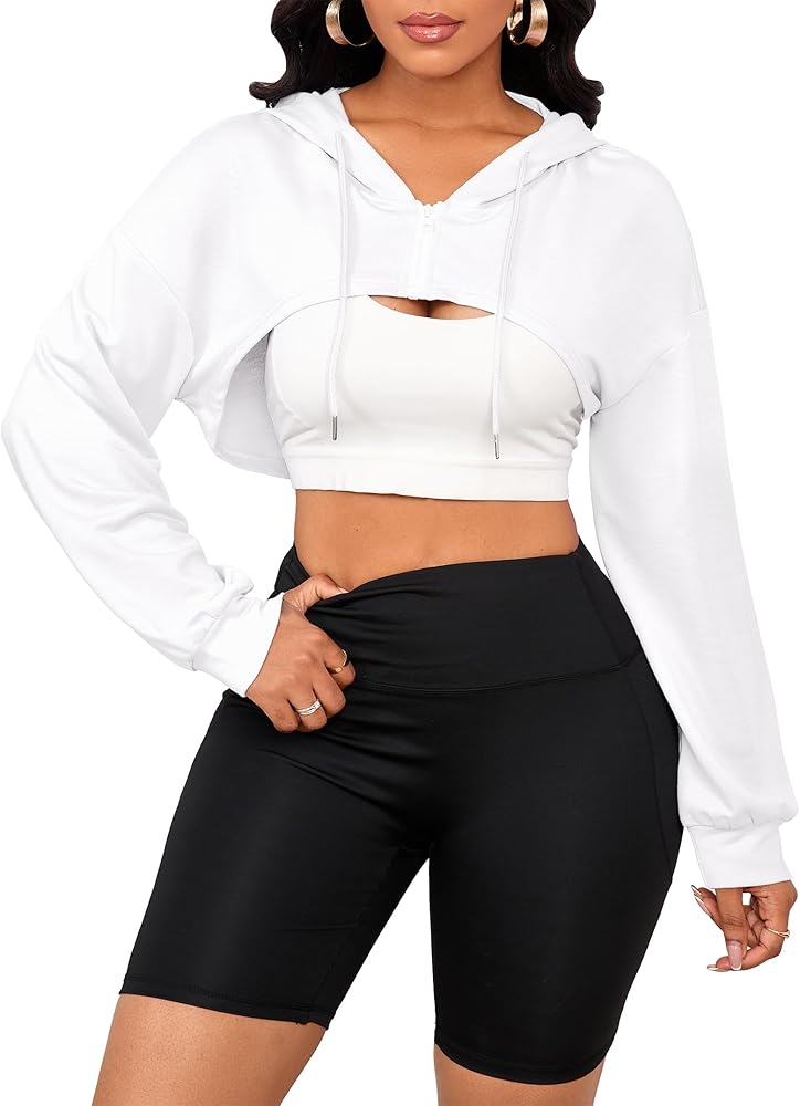 • FEATURES: Zip up hoodies for women features causal long sleeve, zip up front, drawstring, drop shoulder, super cropped design for a trendy look