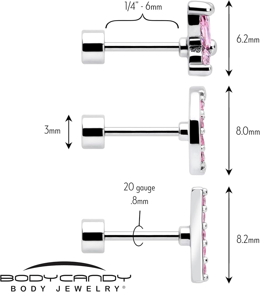 Surgical Grade Stainless Steel for even sensitive ears. We've crafted these in 20g, the same thickness as traditional earrings, making them perfect for earlobe piercings.