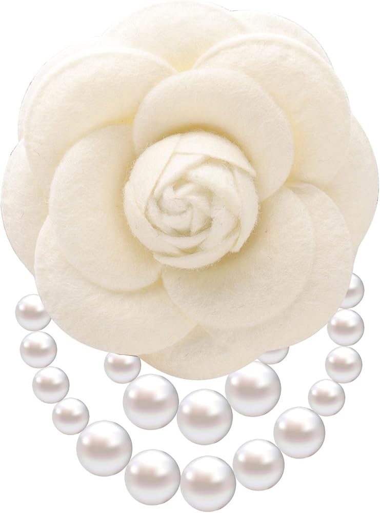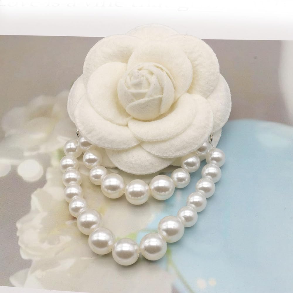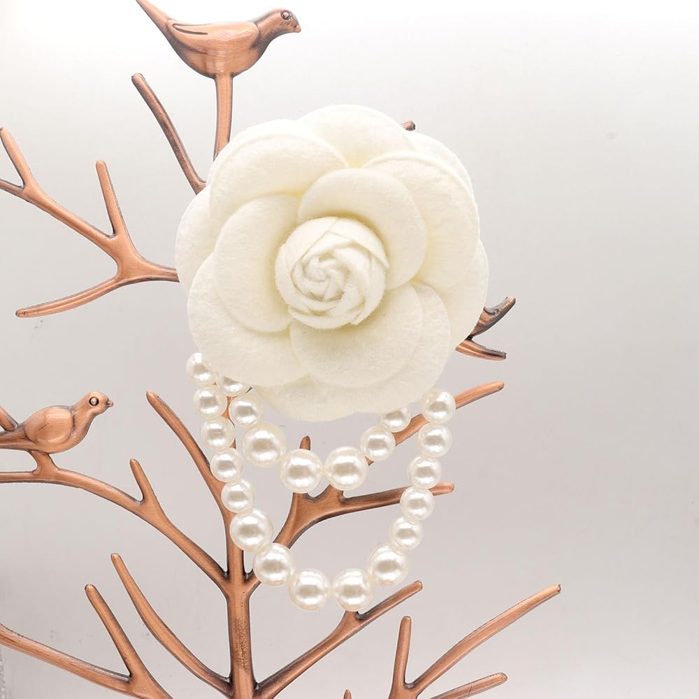 1.Versatile Design--Camellia flower pearl tassel brooches pin bracelet are made of high-quality artificial wool fabric,this brooch features a beautiful camellia flower design, complete with a pearl tassel for an elegant touch.The versatile design of this brooch makes it suitable for both men and women to wear, making it a great addition to any formal outfit. look delicate and novel,full of warm wishes.