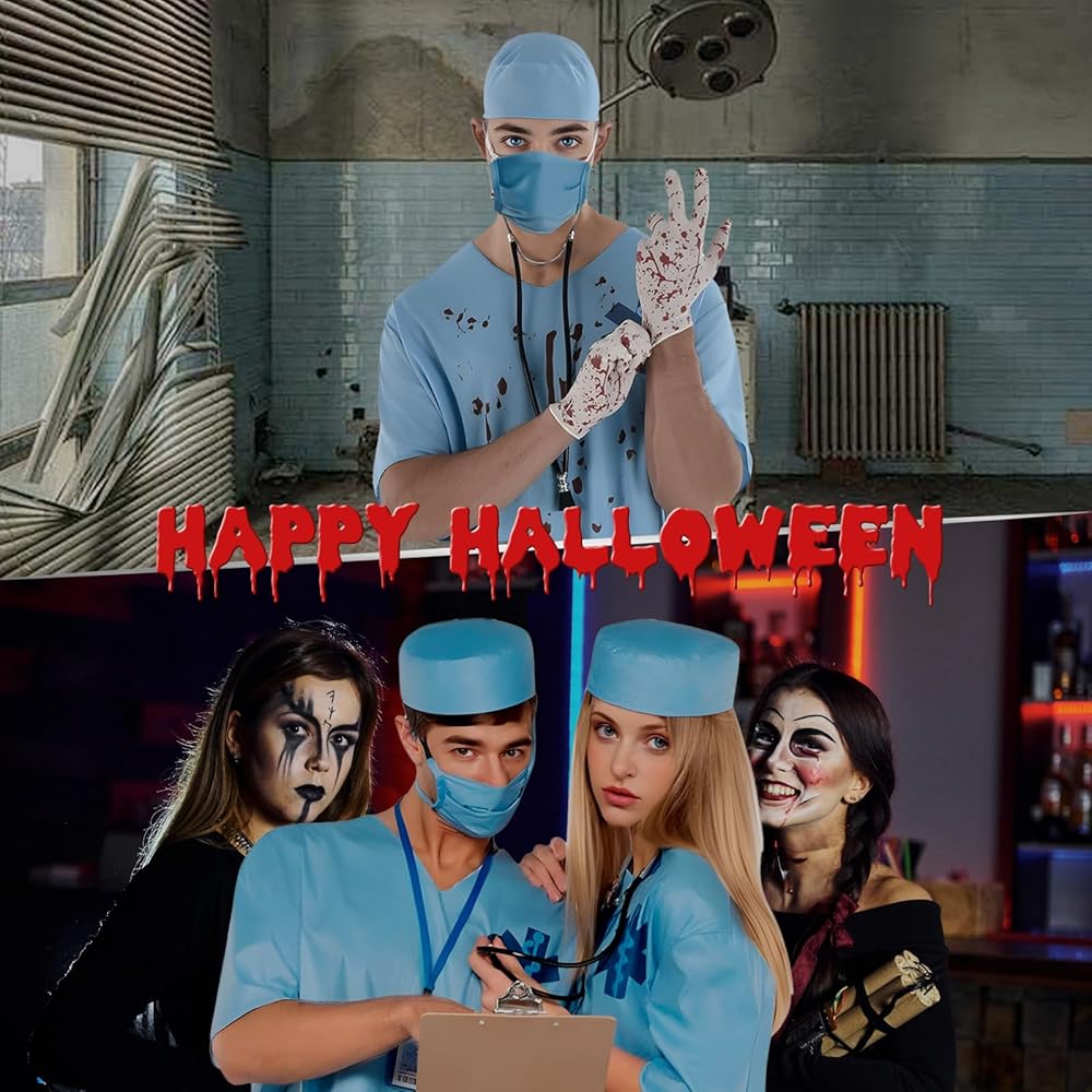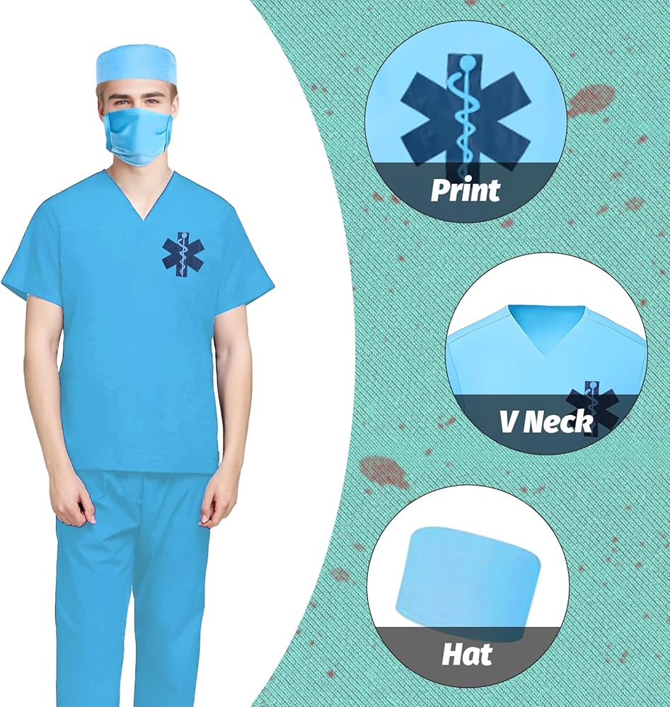 Doctor Costume: Includes a scrub top, pants, mask, and cap.