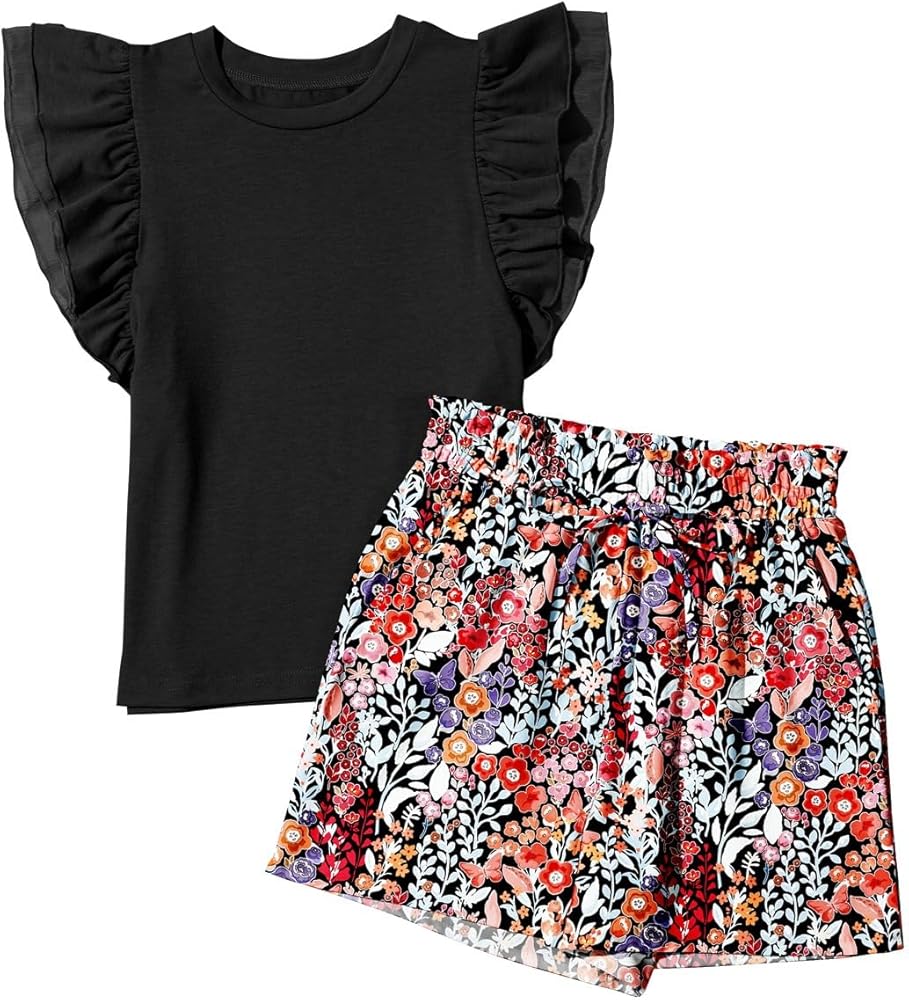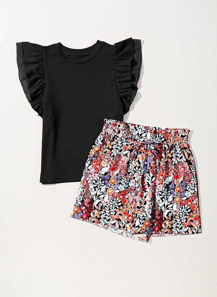 FEATURES: Exquisite double ruffles sleeve design with various hawaiian shorts for summer vacation sense, crewneck, shift tee shirt top, and loose fitting to create a relaxed and slouchy silhouette that shows off your child's elegance and beauty. Pockets on both sides can easily hold keys, coins and small items