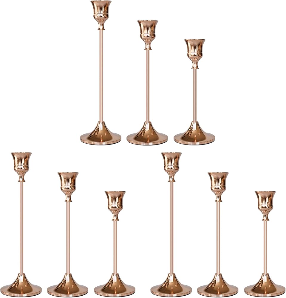 [Robust and Secure Design]Our tapered candle holder has a sturdy frame and base that is not easily tilted. The bottom of each tall candlestick holders is lined with anti slip pads to increase friction while protecting your desktop from scratches and damage. The sturdy weight of cone-shaped candle holder provides additional safety, so you can confidently display these tall candle holders.