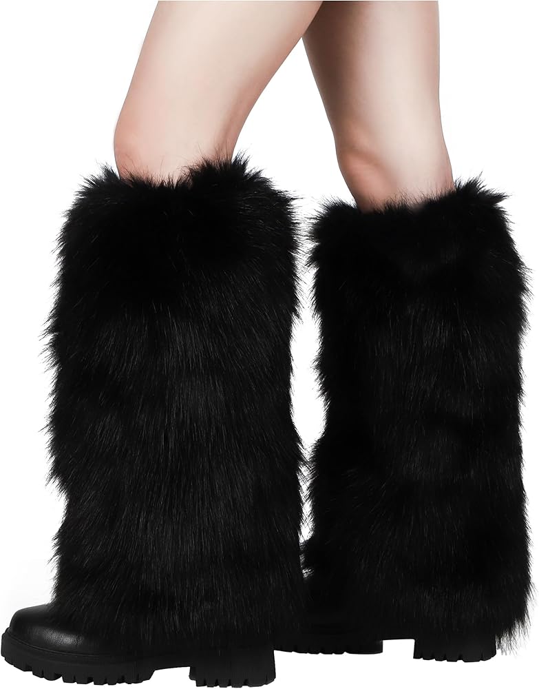 Material: Our fur leg warmers are made from faux fur, soft and shiny, making us look elegant and charming while keeping warm.