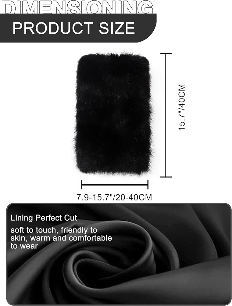 Size:One size long faux fur leg warmer cuff height:10"/40 cm,circumference:5"to 10"/20 to 40 cm,the upper end of the opening is tightened to prevent falling off and play a fixed role, effectively provide warmth, easy to wear and take off to modify the leg shape, increase the sense of fashion and atmosphere.