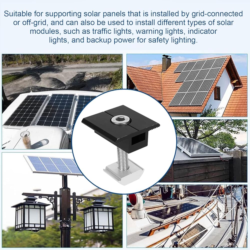 EASY TO INSTALL: Our solar panel mounting brackets end clamp come with pre-drilled mounting holes on the surface, which includes pressure block, screw, which allows the solar panel to be easily attached to the surface of the bracket, making installation work quick and easy.