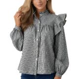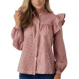 FEATURES: Plaid button down shirts, Shoulder Ruffle decoration, Puff long sleeve, Collared-neckline, Button-front closures, Relaxed fit. women's plaid shirt, women's collared shirts, country shirts women
