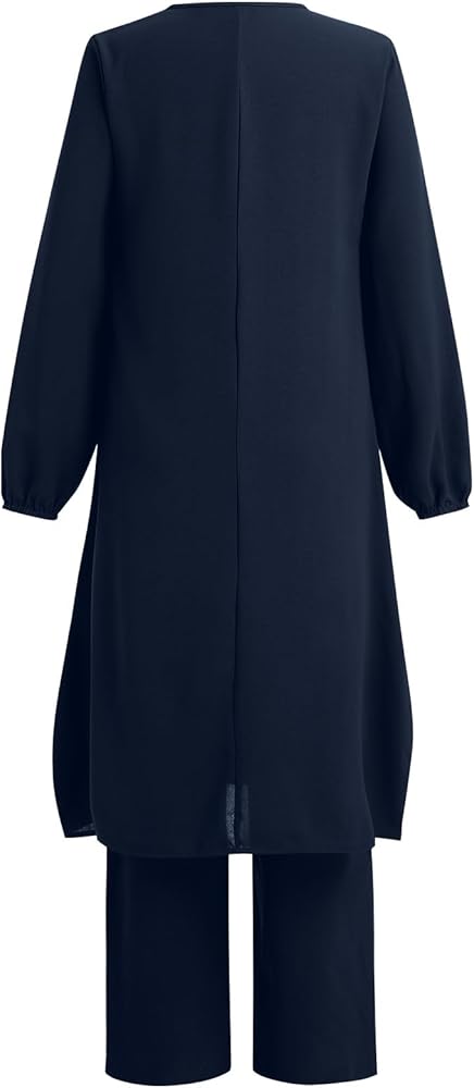 Women's Muslim 2 Pieces Sets Long Sleeve Round Neck Top Dress and Pants Dubai Abaya Outfits