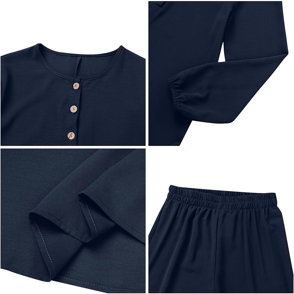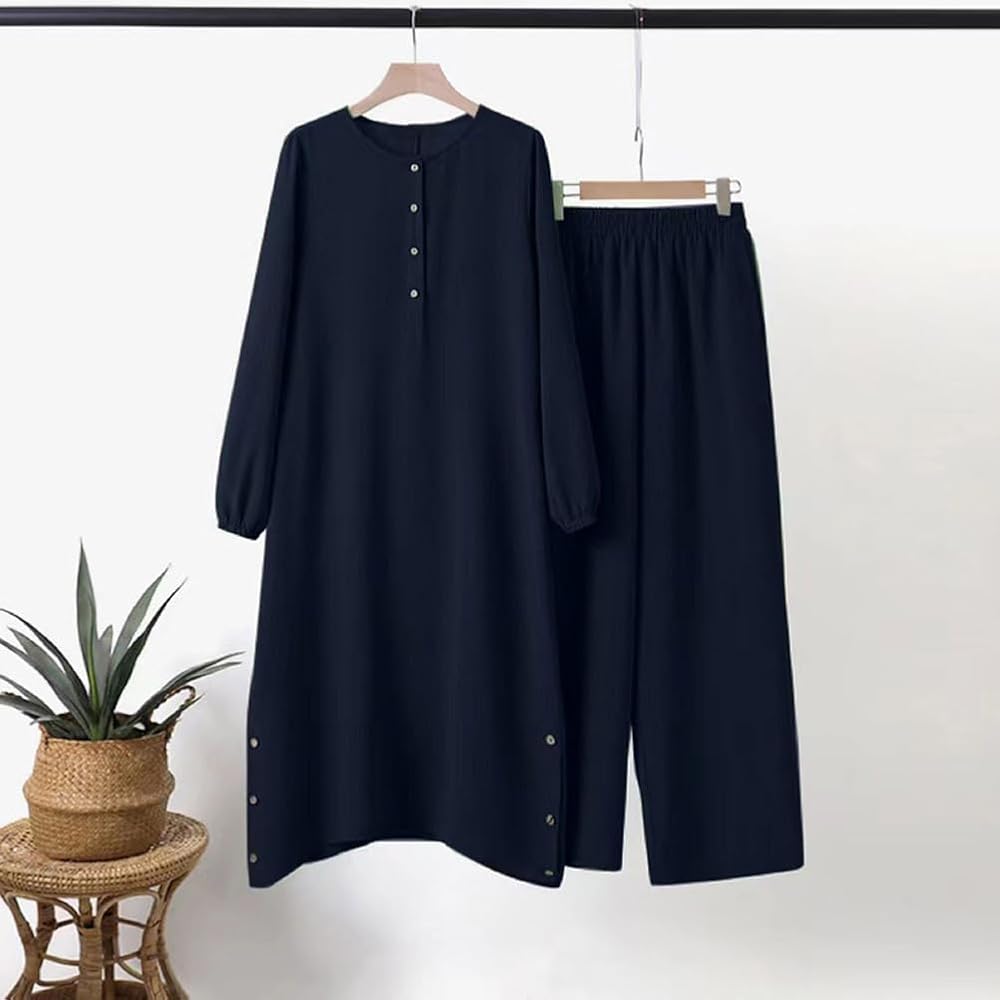 Package Include: 1PC Top and 1PC Pants; Women's Muslim 2 Pieces Sets Long Sleeve Round Neck Top Shirt and Pants Abaya Casual Dubai Outfits Eid Mubarek Outfit Fashion Suit Turkey Abaya Causal Pant Sets Muslim Long Sleeve Blouse Trouser Suit Women Matching Sets . Long Sleeve, Round Neck, Button Closure, Solid Color, Elastic Waistband, Loose Fit.