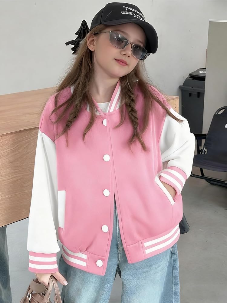- Snap closure design for easy wearing. This classic varsity jacket fits both boys and girls!