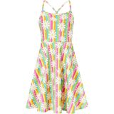 Elevate your little girl's summer wardrobe with our vibrant rainbow dress for girls, designed for ages 5t to size 10-12. This delightful dress features a colorful stripe pattern that's perfect for beach days, tropical vacations, or casual outings. Crafted from soft and breathable polyester, the sundress offers a comfortable fit for all-day play. The eye-catching design includes a backless style with spaghetti straps, making it an ideal choice for warm weather. Available in sizes ranging from 5t to size 11 years, this twirly swing dress allows your child to dance and twirl freely, adding fun to any summer occasion. Perfect for family gatherings, birthday parties, or just a day at the park, this dress can easily be accessorized to create fresh outfits. Pair it with sandals for a laid-back look or dress it up with a cute sun hat for those summer parties. The above-knee cut ensures your little one stays cool, while the colorful stripes bring a joyful pop to her ensemble. Whether she opts for the playful flamingo print or the classic rainbow stripes, this sundress is sure to become a staple in her closet. Its versatility makes it suitable for everything from hawaiian luaus to casual get-togethers. Upgrade her summer style today with our girls colorful stripe dresses! Perfect for creating lasting memories under the sun. Grab yours now and watch her shine in this fabulous floaty sundress!