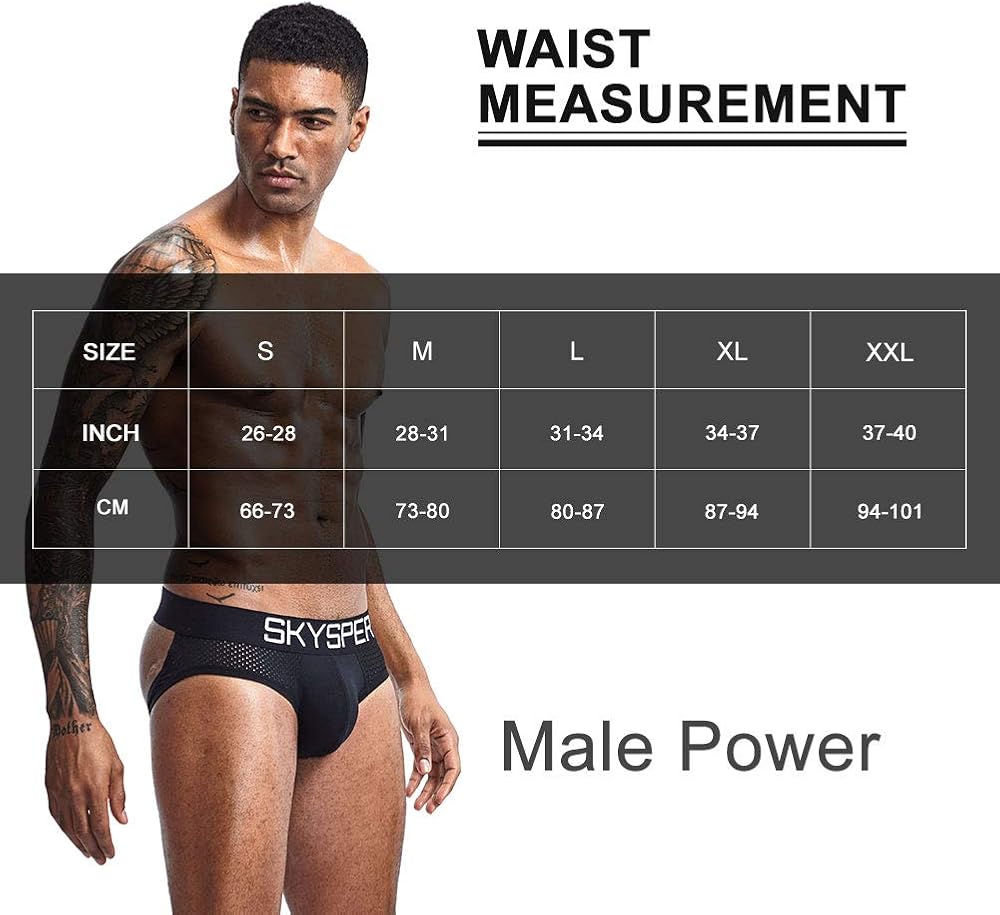 - SKYSPER Men's jockstrap underwear, each size has 1 inch of give for stretch/flexibility in movement and fit