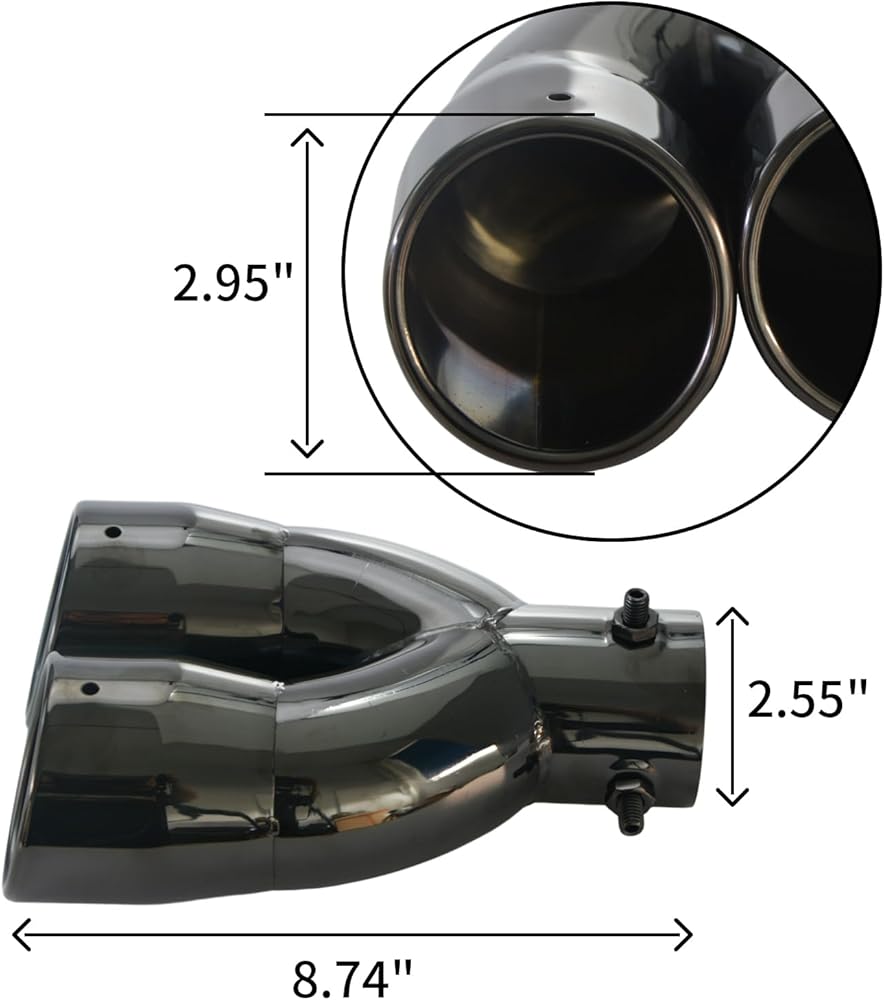 Adjustable Fitment: This exhaust tip is adjustable and can fit exhaust pipes with an outer diameter ranging from 2.5 inches to 3 inches, offering a customizable solution for different vehicle setups.