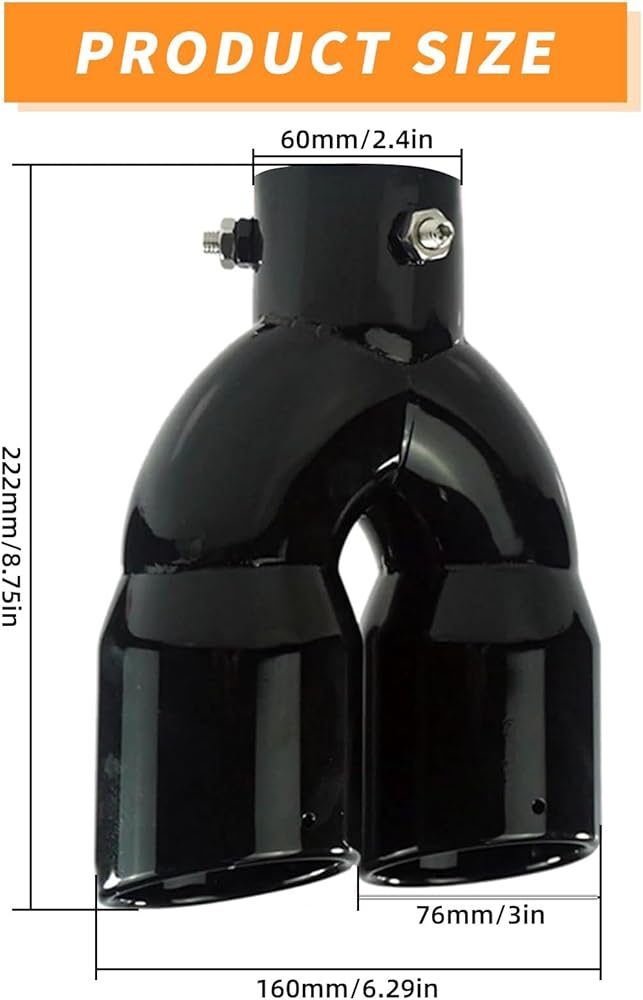 Universal Dual Exhaust Tip: This 1PCS dual exhaust tip is designed with a 2.5 inch inlet, making it a versatile addition to various car models, enhancing the look of your vehicle's exhaust system.