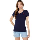 Give your basic styling game new heights wearing the U.S. POLO ASSN. Stretch V-Neck Tee. V-neck tee with short sleeves. Unique graphic embroidered on the left chest. Straight hemline. Pull-on construction. 95% cotton, 5% spandex. Machine wash, tumble dry. Measurements:Length: 25 1/4 in.