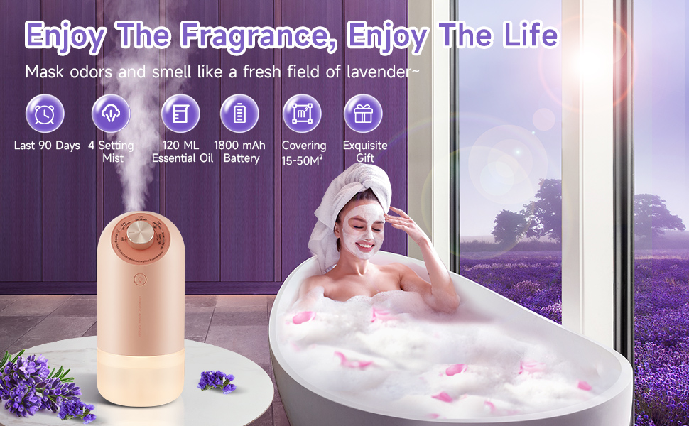 🌹【Large Capacity & Lasts 90 DAYS Scent Diffuser】With 120ML lavender oil of scent diffuser, u can enjoy up to 20-90 days of lavender scent. Get this 1800mAh waterless diffuser, cordless diffuser,u can say goodbye to plug-ins scent diffuser,3AAA scent diffuser,add water diffuser and air freshners.Once open cordless diffuser,fragrance diffuser will subtly diffuse scent across ur room.Cordless diffuser for essential oils is easy to move from room to room which meet ur scent needs anywhere,anytime