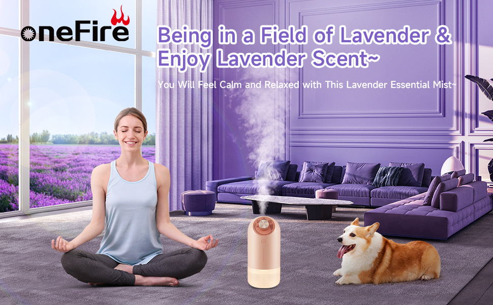 One Fire Lavender Scent Diffuser Waterless Diffuser, 4 Mist Scent Diffusers for Home Bathroom Diffuser Last 90 Days, 1800mAh Battery Operated Diffuser Cordless Diffuser, Car Fragrance Diffuser Gifts