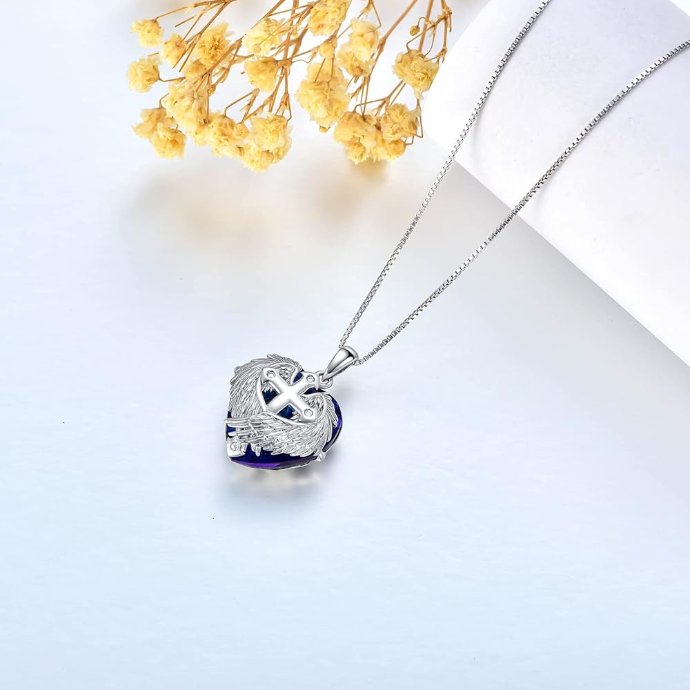PROESS Cross Necklace 925 Sterling Silver Celtic/Angel Wings/Tree of Life Cross Necklace Cross Pendant Jewelry Gifts for Women Men for Birthday Christmas
