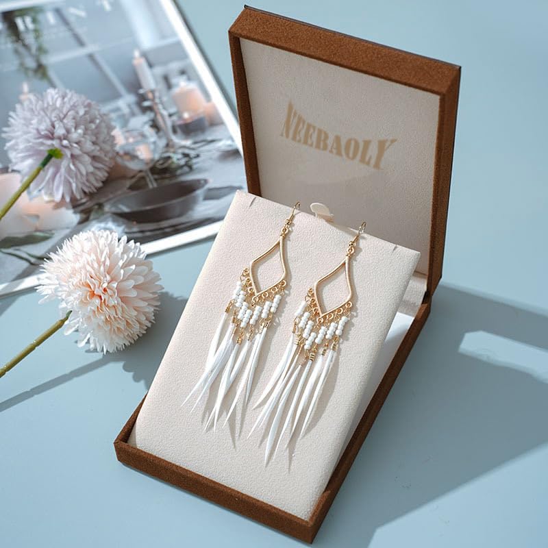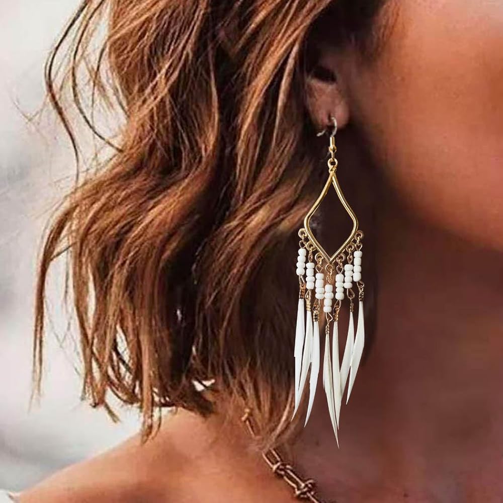 A pair of white feather tassel earrings