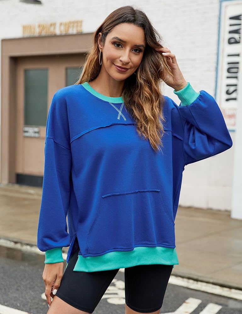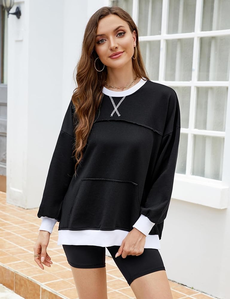 【Y2K Color block】Patchwork contrast trim design adding y2k youthful style to the girls sweatshirts, while exposed seams in front and back detailing make it effortless standout in basic sweatshirts. Upgrade your wardrobe with this essential piece!