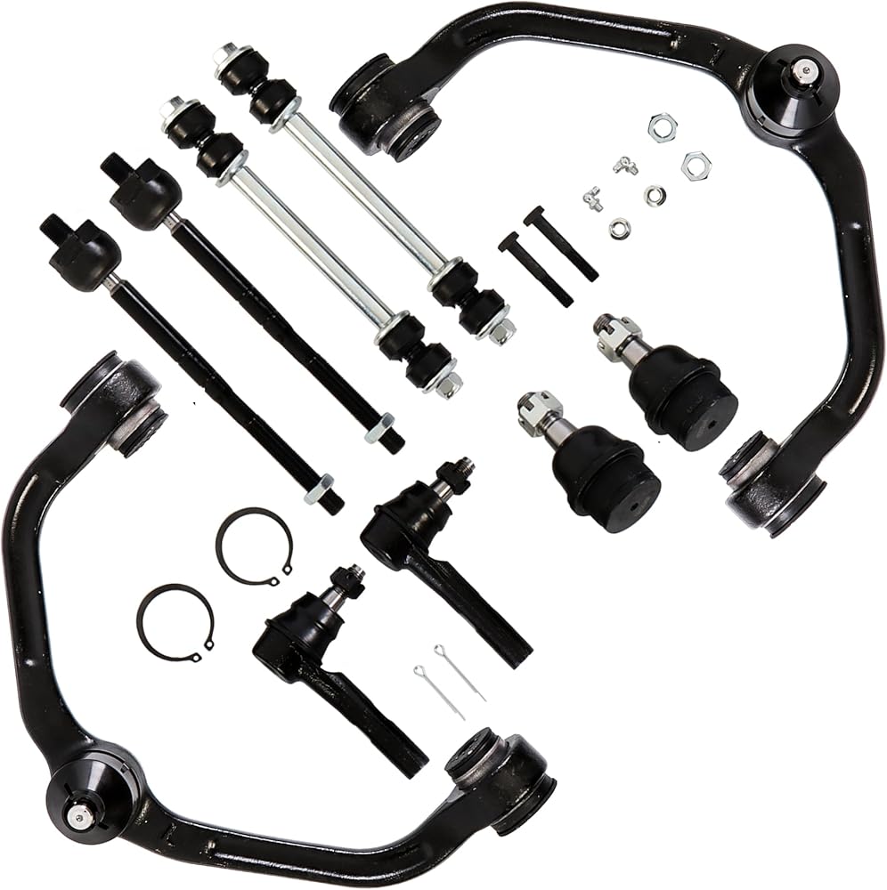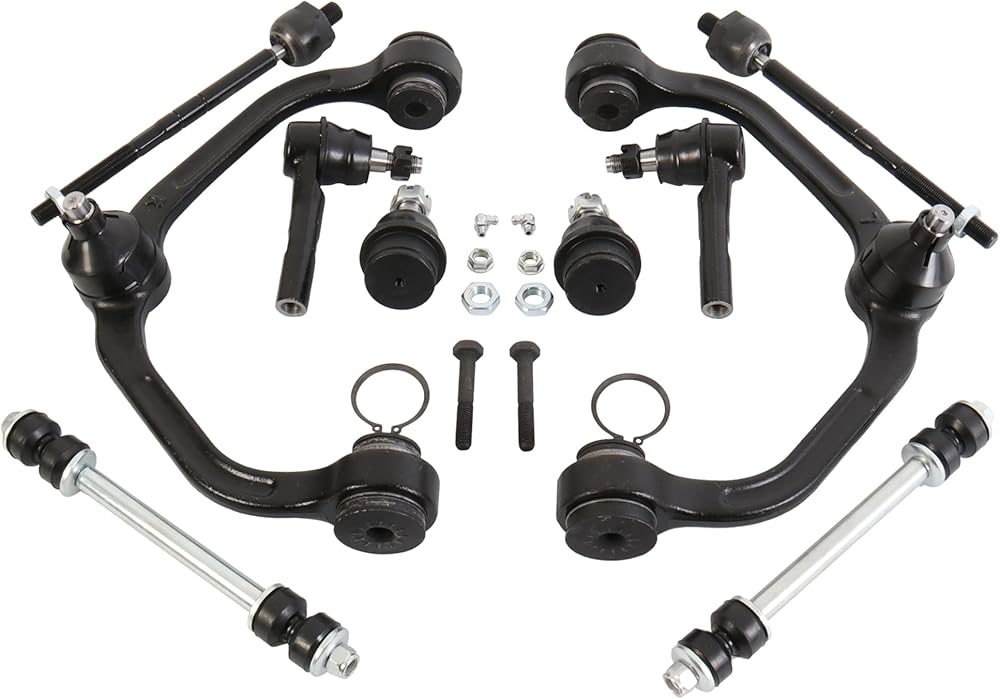 【Package includes】 1x Front upper control arm with ball joint - Driver & Passenger side- K80054 & K80052, 2x Front stabilizer/sway bar link kits- K7275, 2x Front lower ball joint - K8771, 2x Front outer tie rod end - ES3461, 2x Front inner tie rod end- EV317
