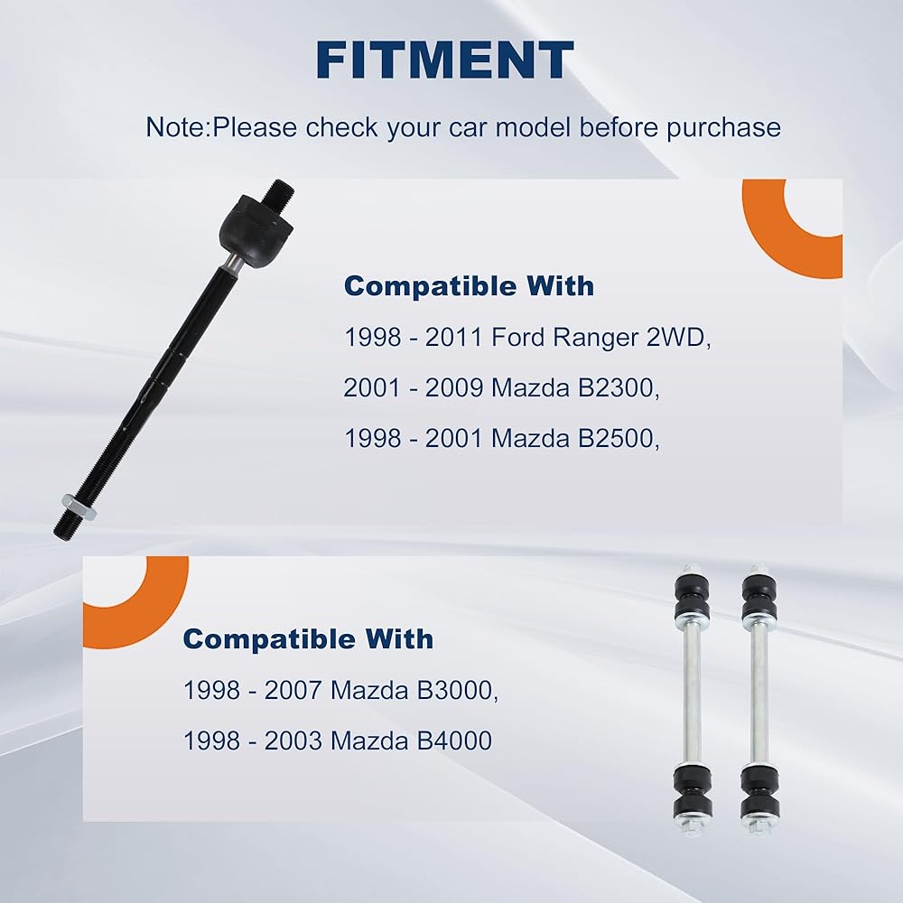 【Fitment】 Compatible with 1998 - 2011 Ford Ranger 2WD, Compatible with 2001 - 2009 Mazda B2300, Compatible with 1998 - 2001 Mazda B2500, Compatible with 1998 - 2007 Mazda B3000, Compatible with 1998 - 2003 Mazda B4000