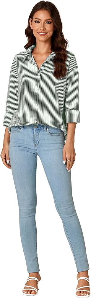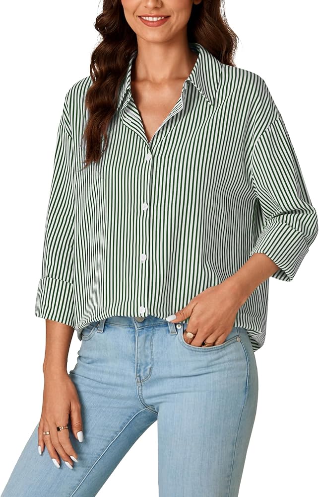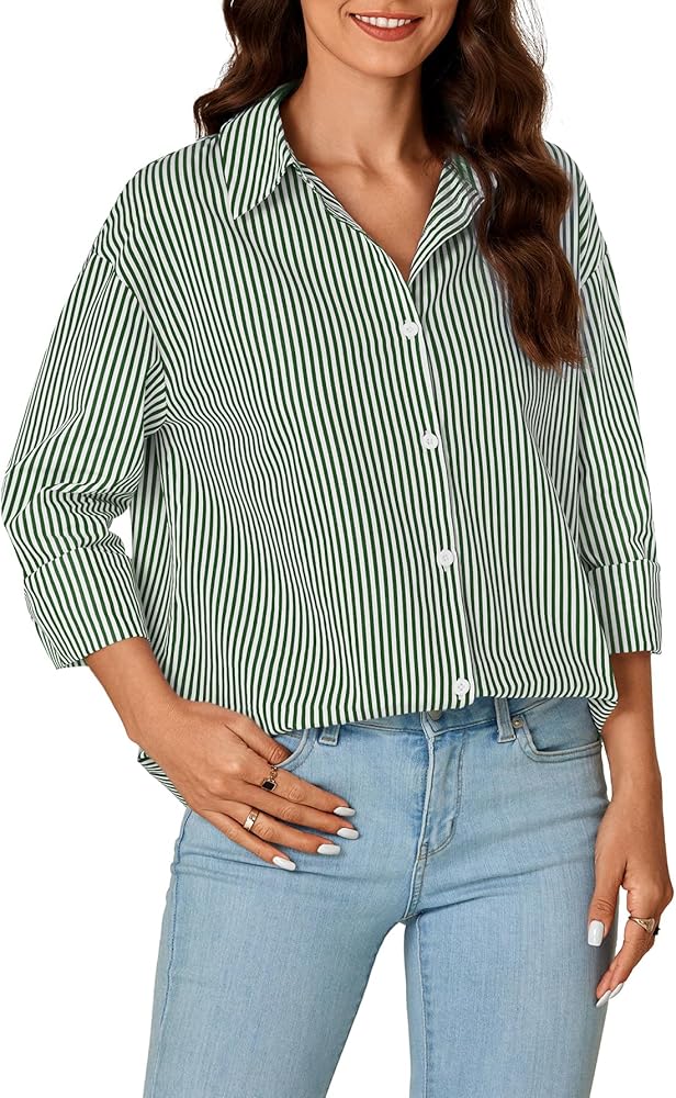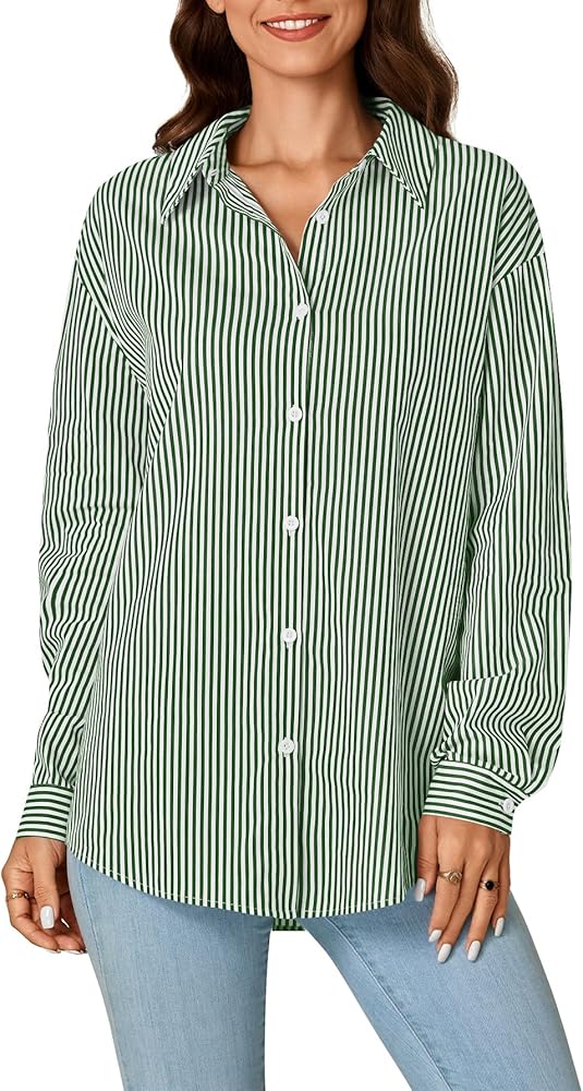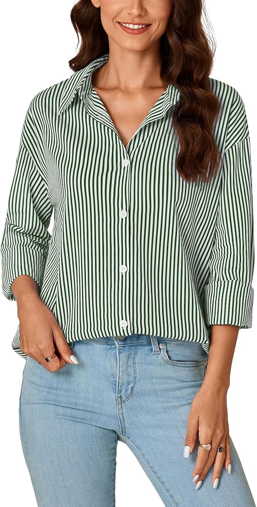 The womens striped button down shirt is made of high quality, soft to touch fabric, cozy, breathable and comfortable fabric, It makes you feel nice all day long!