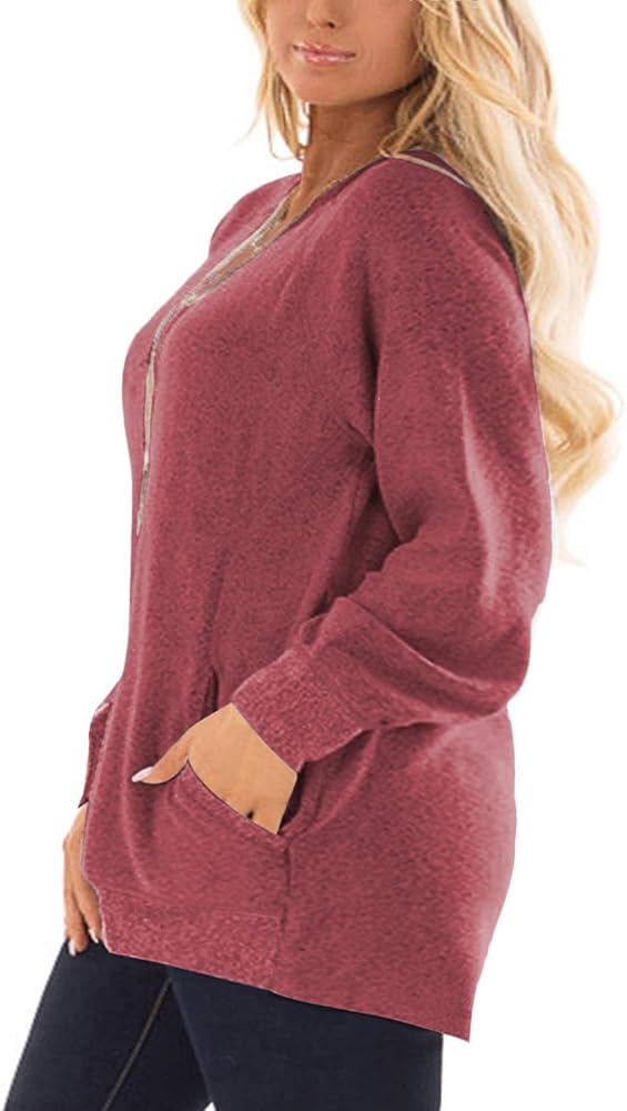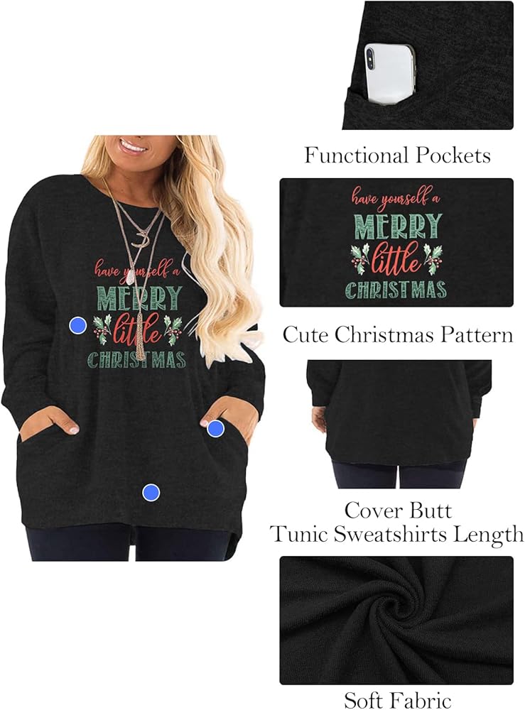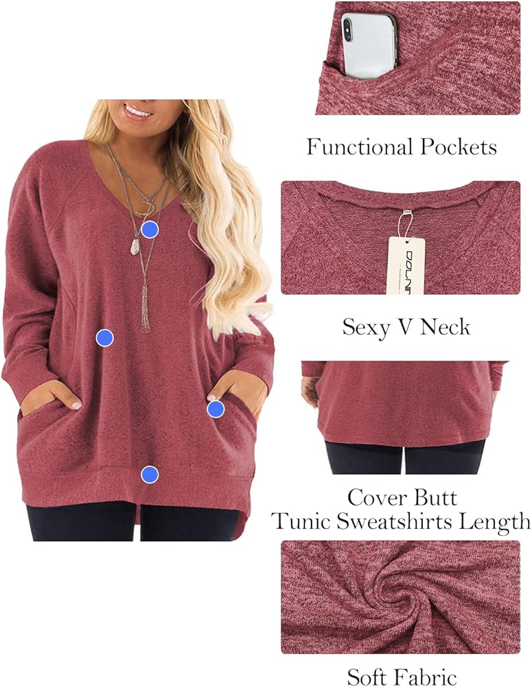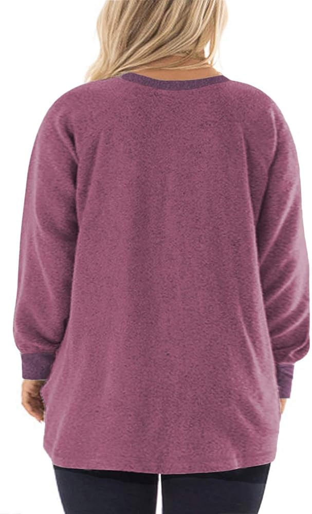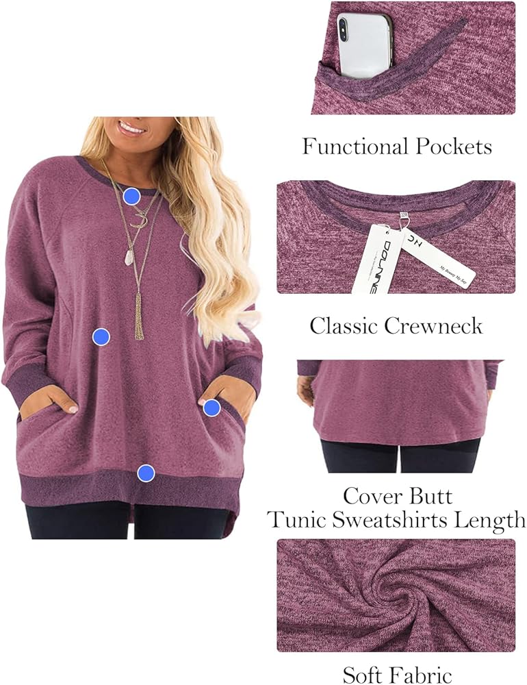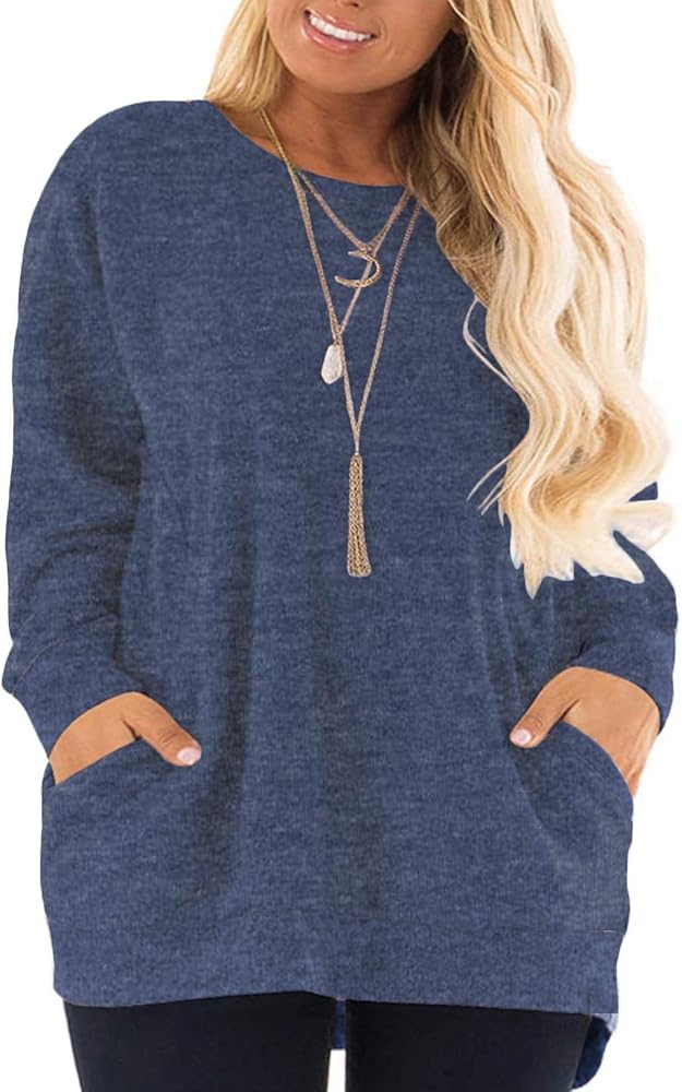 Plus size tunic sweatshirts for women with flattering length and loose fit style to cover the tummy and hip well, ideal for daily wear or work wear.