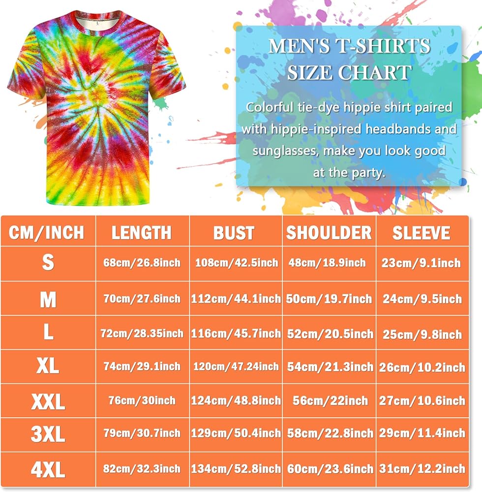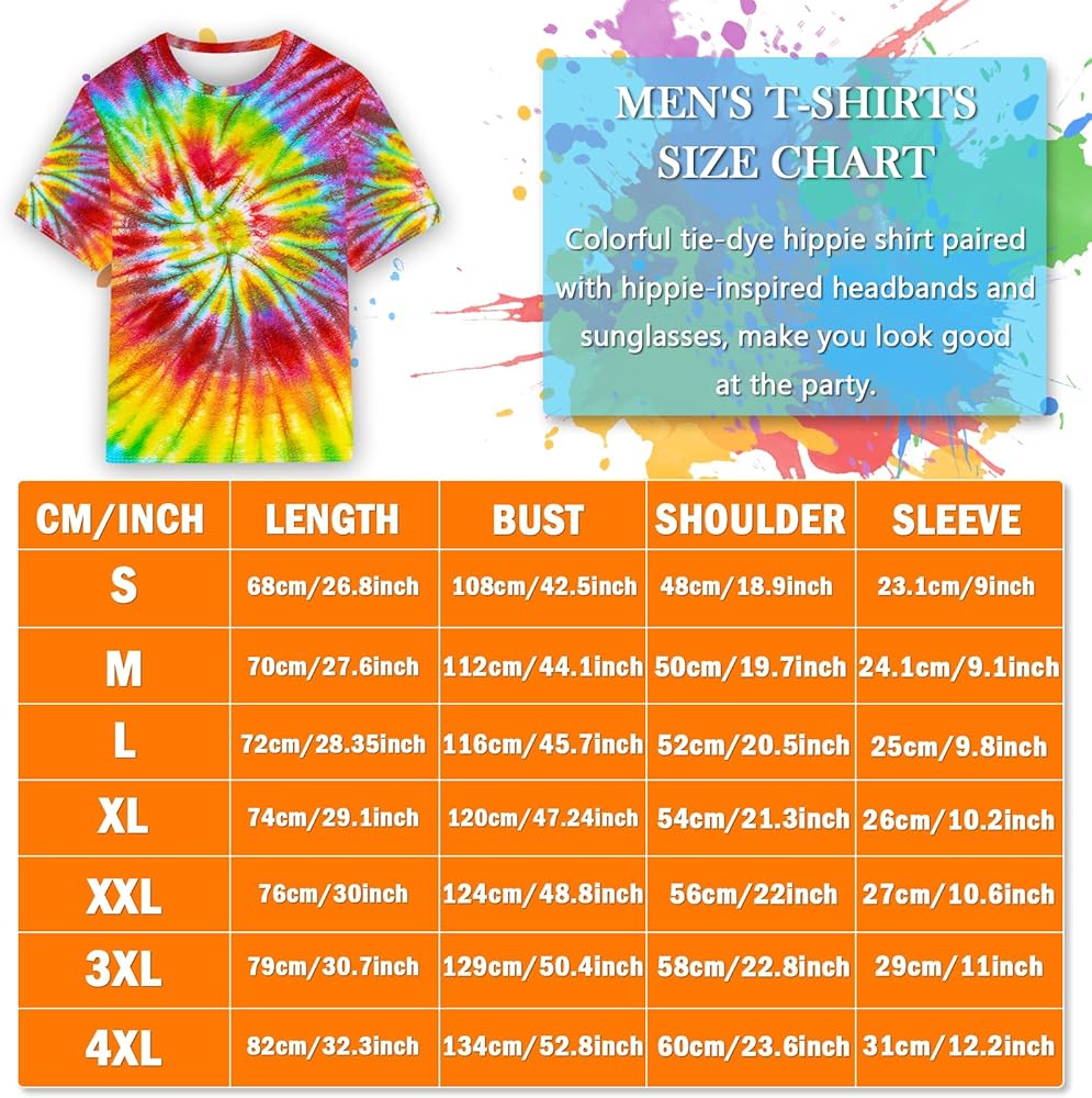 🎸【Colorful and Soft Mens Hippie Shirt】This 70s costume men is made of 95% polyester, 5% spandex, which is very lightweight and comfortable. Stylish and versatile crew neck design with a clear rainbow print, makes you look very sunny and charming. And perfect for 60's or 70's themed party, summer events, seaside vacation, everyday wear, etc.
