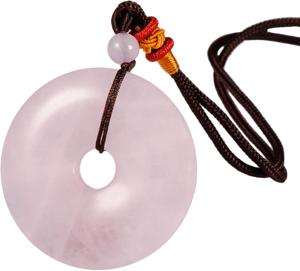 Handcrafted stone necklace with love. Total Length of nylon cord:32"-33". Diameter of Donut:1.6";Thickness of Donut:0.3". Bead:6mm. Quantity:1x crystal necklace;1x gift pouch. It weights only about 20-25 grams. Light weight and comfortable for wearing.