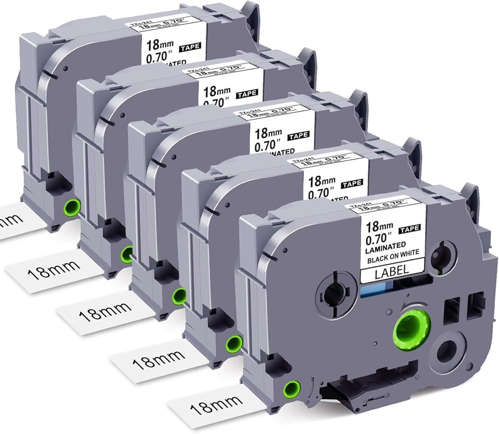 Package Content: 5-Pack Compatible for Brother P Touch TZe TZ tape 18mm 0.7" laminated White TZe241 TZe-241 TZe241 TZ241 TZ-241. Size: 0.7 inch x 26.24 feet ( 18mm x 8m ). Color: Black on White.