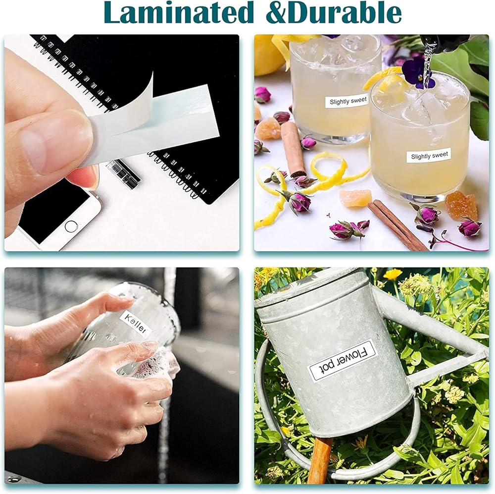 Durable indoor or outdoor labels:P Touch label maker tape is standard laminated durable and strong adhesive tz tape.So the ptouch tapes are waterproof, wear-resistant, temperature-resistant, oil-resistant, stain-resistant,and does not fade or fall off.