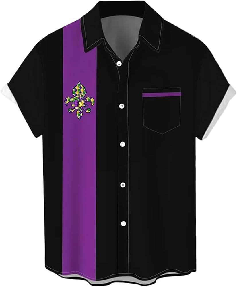 Fun holiday shirts: Going to the Mardi Gras in New Orleans or a Mardi Gras celebration somewhere else? mens mardi gras shirt wonderful for wearing at Mardi Gras/King Cake parties, or wanting to look festive attending various parade routes for Mardi Gras where you may live