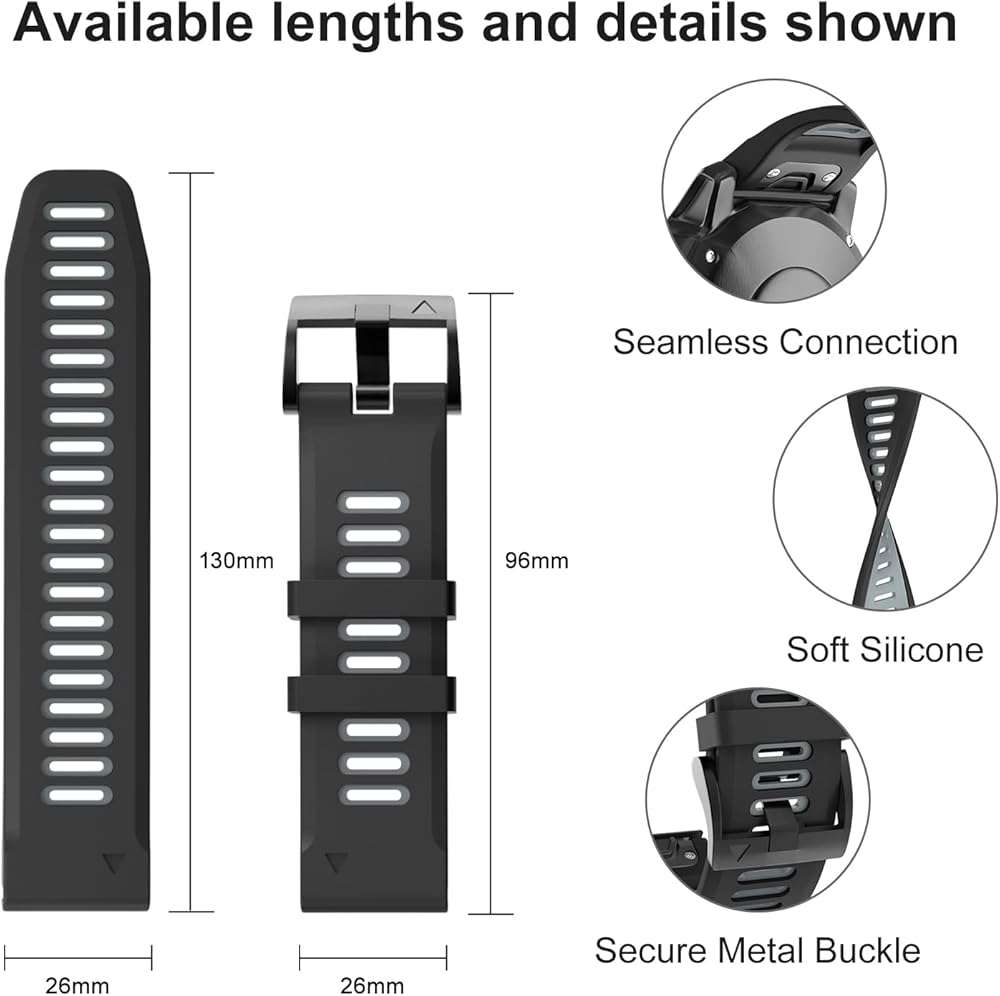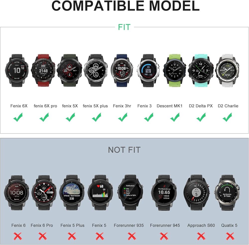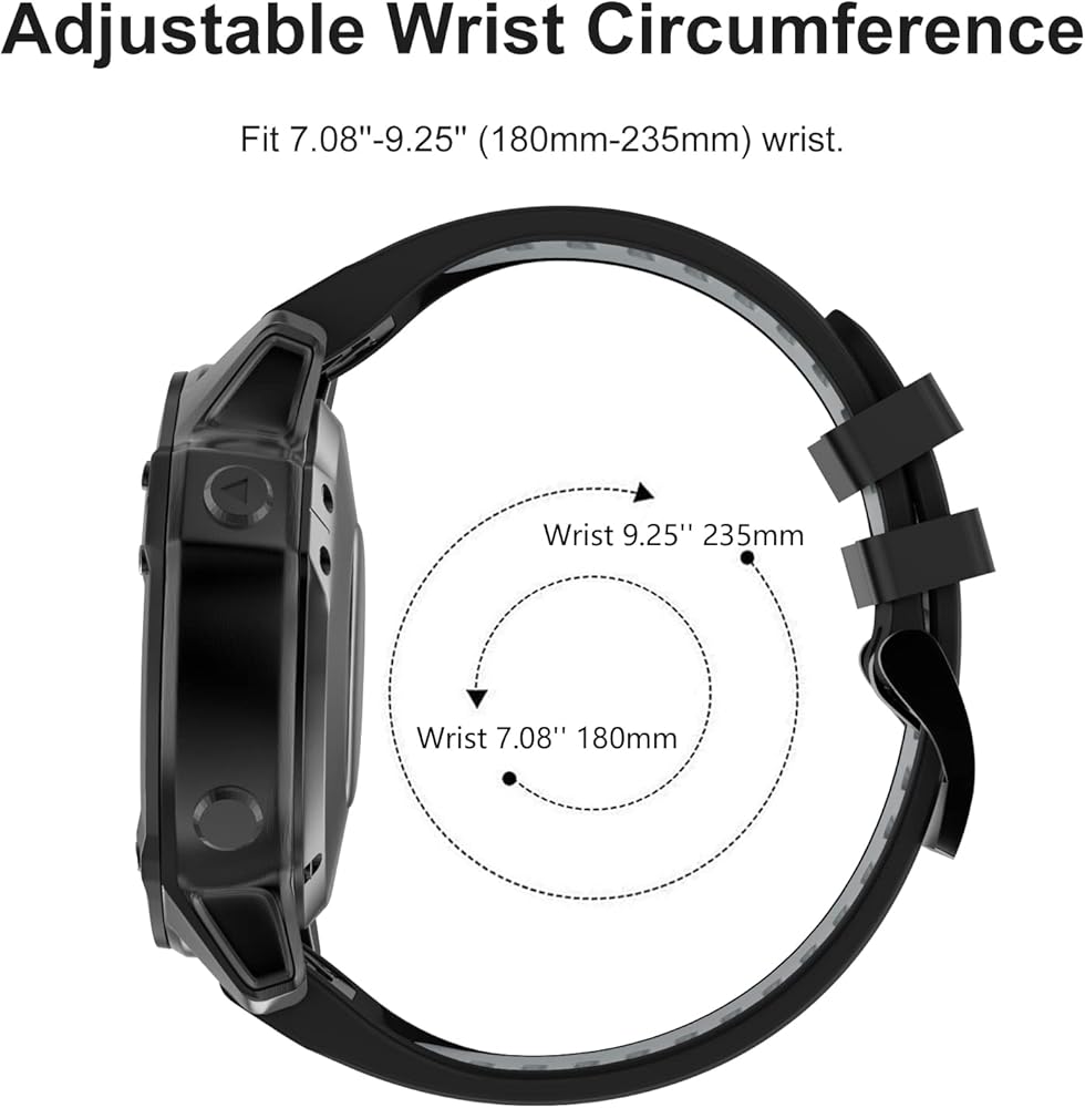 【For Garmin Watch Band】Compatible with Fenix 6X / Fenix 6X Pro / Fenix 7X / Fenix 5X / Fenix 5X Plus / Fenix 3 / Fenix 3 HR / Descent MK1 / D2 Delta PX / D2 Charlie Smartwatch. Fit for 7.08''-9.25'' (180mm-235mm) wrist.