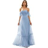Maxi tulle party dress with off-shoulder, the wedding guest dress is fashion and modern.