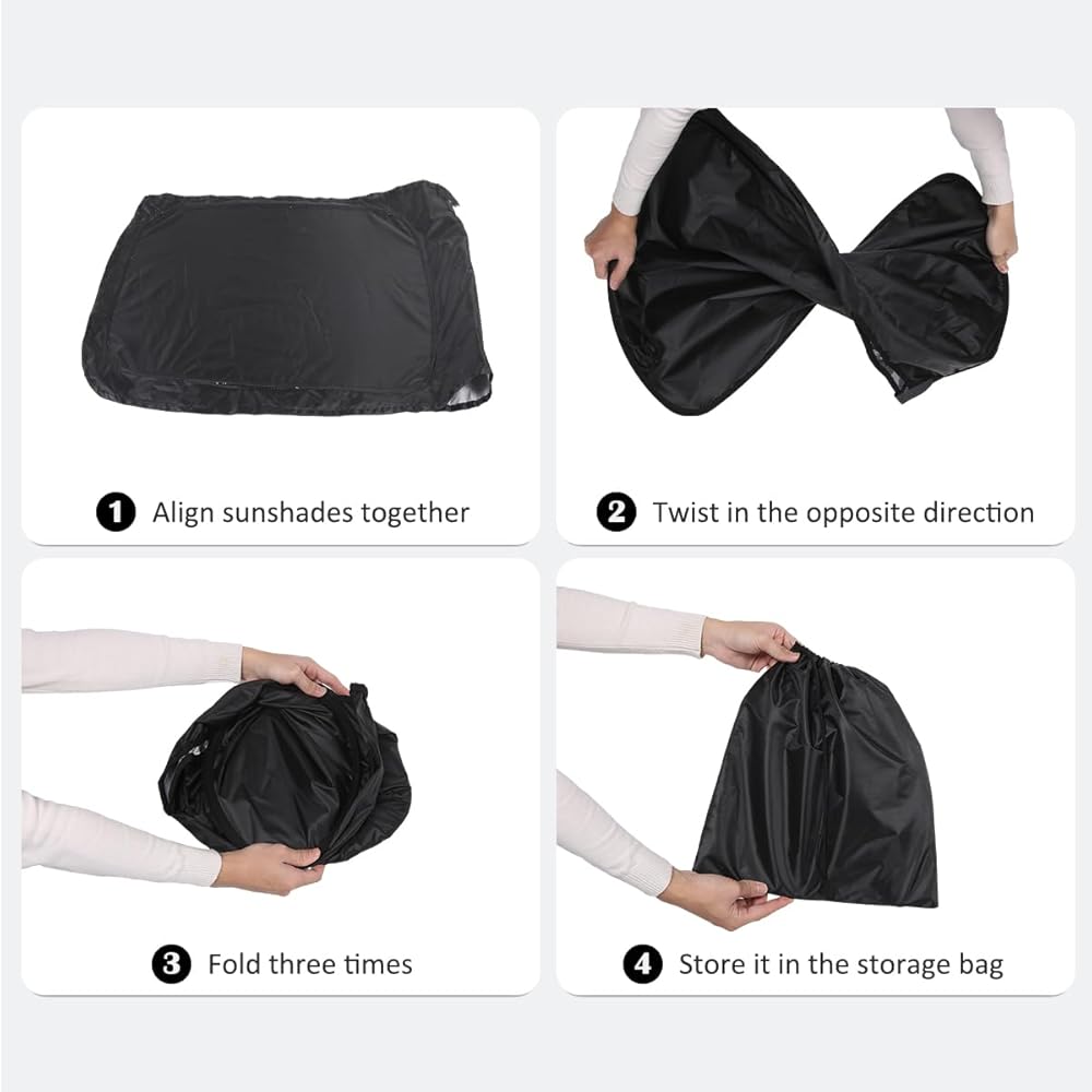 【EASY TO SETUP AND CARRY 】 - The foldable shades quickly and easily fold away into the pouch provided for convenient placement inside your vehicle.