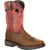 Rugged, tough, and built for jobs rough. This Carbo-Tec LT waterproof steel toe work boot is an 11" square toe western work boot. It features a full-grain leather upper with leather pull loops, a rear Counter Lock System and rear zipper for easy on and off. Inside you will find high performance mesh lining and the Georgia Waterproof System. Our waterproofing is guaranteed to defend against water coming into your boot when working in wet conditions. Also inside is a removable polyurethane insole built for cushioning shock absorption with every step. The steel toe cap is Ergo-Fit, which means it is designed with the shape of your foot in mind. It provides a wider range of motion without compromising protection. This work boot meets the ASTM F2413 electrical hazard and protective toe standards for safety footwear. The EVA midsole, fiberglass shank and rubber outsole are attached to the upper through one of the most trusted bonds in footwear, the Goodyear® welt construction. Our Carbo-Tec outsole is not only oil and slip-resistant but possesses great abrasion, chemical and heat resistant properties as well.