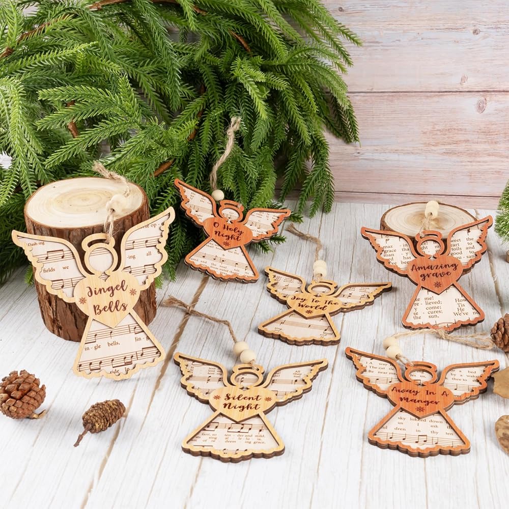 Elegant Color Scheme: The natitivy wooden hanging pendants feature a sophisticated palette of white, yellow, and silver that complements any Christmas decor style, from rustic farmhouse to modern minimalism. This tasteful combination of colors adds a soft, reflective quality that blends beautifully with holiday lights and other seasonal decorations.