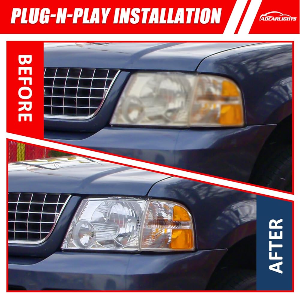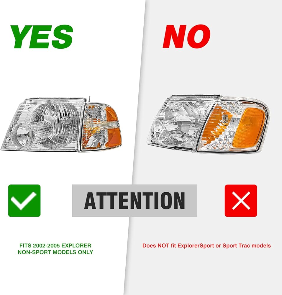 - 【100% OE Fitment】Headlight Replacement for 2002 2003 2004 2005 Ford Explorer (Does NOT Fit Sport & Sport Trac Models)