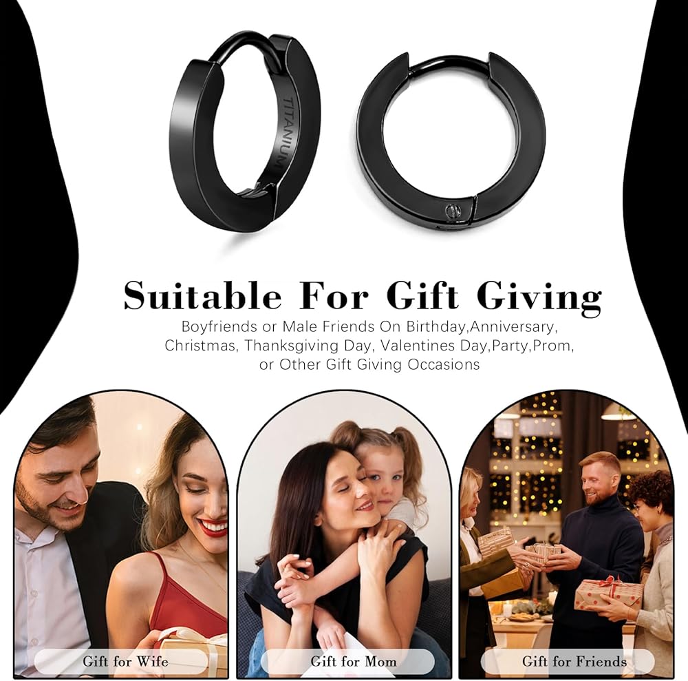 FOR ANY OCCASION: Fashion black mens titanium hoop earrings come with a nice package. It will be a very surprised earrings gift for husband, father on Valentine's Day, Thanksgiving Day, Christmas Day and any other festivals
